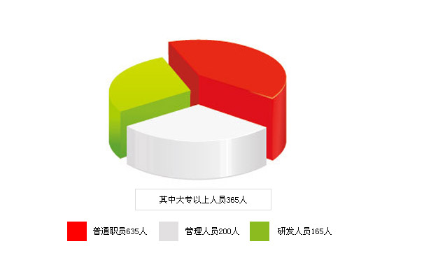 公司現(xiàn)有員工1000多人,具有大專以上學(xué)歷的技術(shù)人員360多人,從事研究開(kāi)發(fā)人員165人。